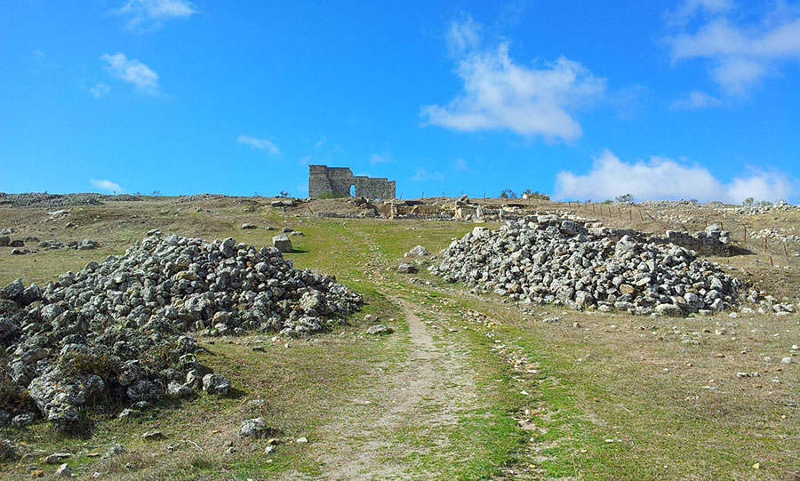 Una vez pasamos la puerta nos reciben los guardas y lo primero que nos llamará la atención son las grandes montones de piedras que imperan por el terreno. No tiene más valor que el del esfuerzo de los ganaderos y agricultores de estos páramos por limpiar el terreno y poder cultivar en él en su momento. Así se encontraron gran cantidad de piezas de distinta indole, principalmente monedas de cobre como describiamos antes.