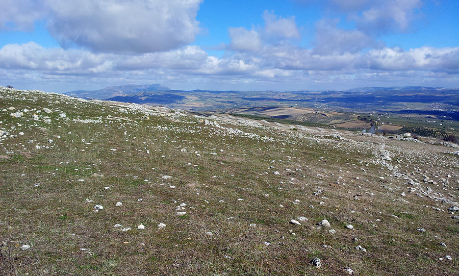 Los materiales que conforman el relieve a la subida de ésta gran mole está formada principalmente por acarreos sedimentarios que proporcionan tierras fertiles en todo el contorno de la montaña que asciende a practicamente los mil metros. Esta zona la podríamos delimitar en las estribaciones de la Sierra de Grazalema, que forma parte de la cadena sub-bética. El sistema Bético discurre desde el estrecho hasta la provincia de Alicante. Está formada por complejos mantos sedimentarios tectónicamente superpuestos, de época pre-cambricas con alteraciones por las etapas metamorficas alpinas con materiales de sedimentos de los mares en el plioceno hace unos 5.500 a 3.500 millones de años. Los continentes procedentes de la Pangea circulan a la deriva y aqui se sucede la colisión entre las placas africana y euro-asiática formando todos estos plegamientos. Bueno más o menos como hoy en día, solo que ahora lo observamos con la perspectiva de todo éste tiempo. |