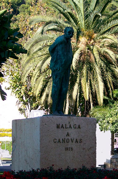 Estatua en memoria a Cánovas, en la Avd. de Cánovas del Castillo en Málaga. Málaga a Cánovas en 1975. Plaza de Torrijos. |
