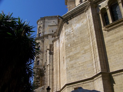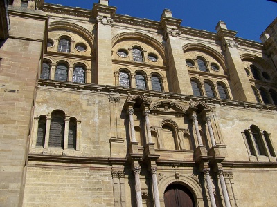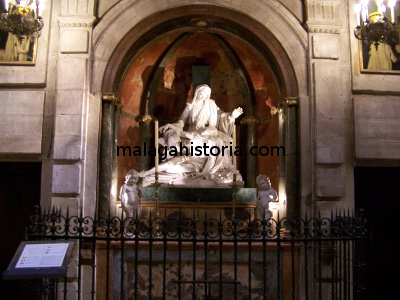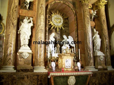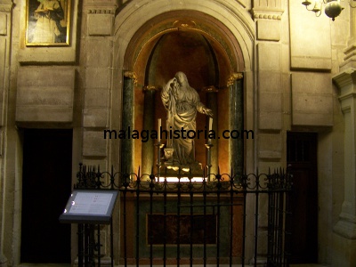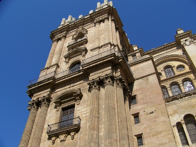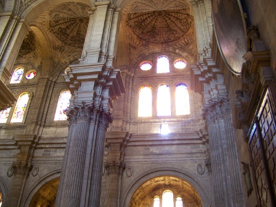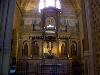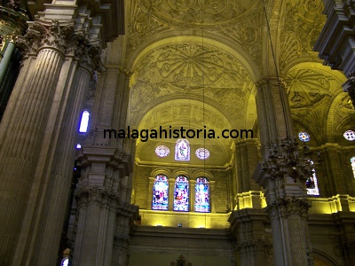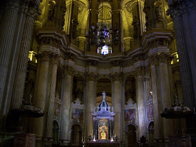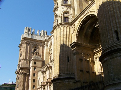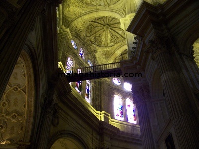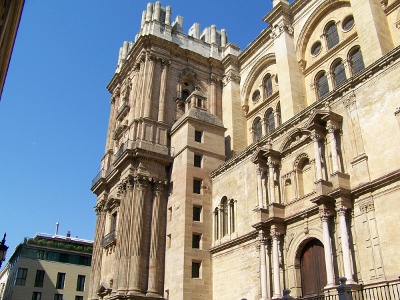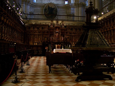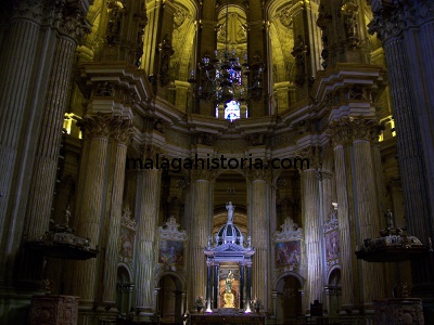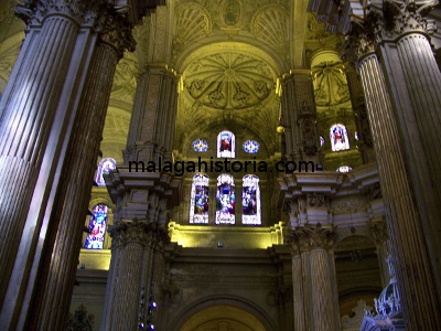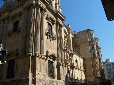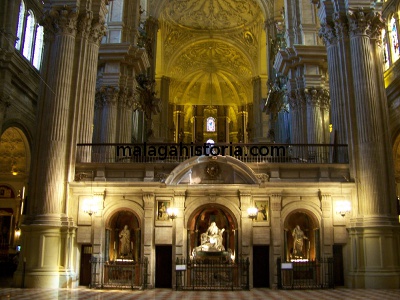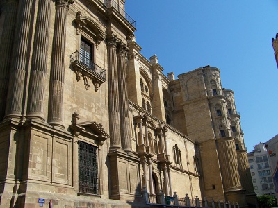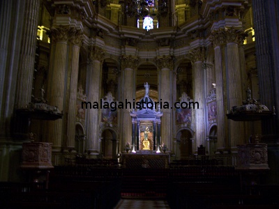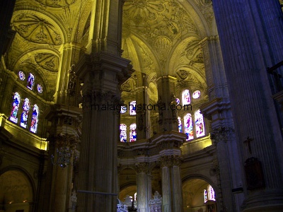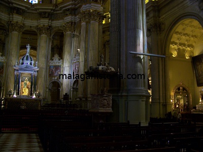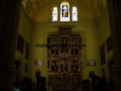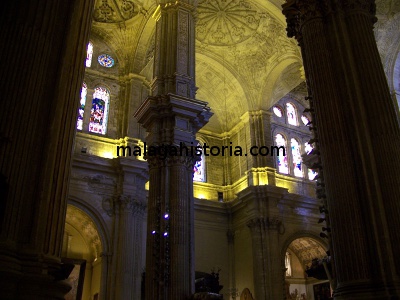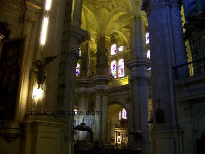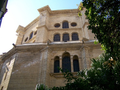 La historia de la Catedral está íntimamente relacionada con la mezquita Mayor sobre la cual fue construida, entre 1528 y 1782, englobando actualmente el edificio del Sagrario, lienzos de la primitiva mezquita y encontrándose también trazos en la galería que une el Sagrario con la Catedral, precisamente en el lugar en que se encuentra hoy día el museo. La Aljama mayor, según cuenta Ibn Batouta, que visitó Málaga en 1360, era muy grande y célebre por su santidad. De su conjunto, destaca en especial el patio, sin igual en belleza y cuyos naranjos eran altísimos. Hay referencias a la existencia de la « Madrasat al Utma», que algunos comparan, incorrectamente, con una universidad aunque se le asemeja en el hecho de ser también un centro de enseñanza. En ella sobresalió el erudito tangerino Mohammed Sen Jusuf Sen Umar. |