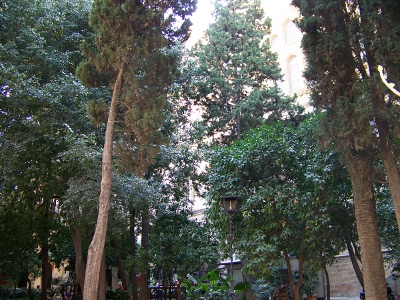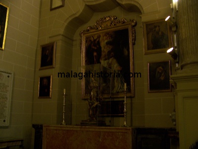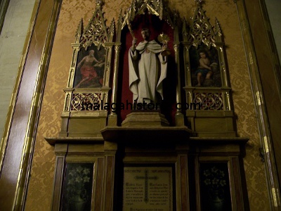 Es seguro que este altar estaba donde ahora se encuentra la puerta principal de la galería que, del jardín, da paso al patio de las Cadenas. Capilla de San Jerónimo. Tenía verja de hierro con llave y fue rica en alhajas, lleqando únicamente a nosotros una hermosa ara de pórfida y la imagen de San Jerónimo. Capilla de Santa María de los Angeles o de San Francisco.