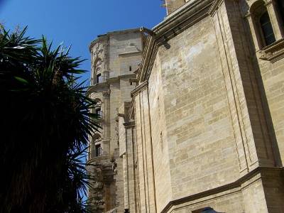 Parte del lienzo del muro exterior de la Catedral, así como al otro lado, está como sin acabar, habiendo, parece ser, pensado en tiempos pasados aumentar la Catedral, añadiendo dependencias que nunca llegaron a realizarse. Siguen después varias capillas de escaso interés histórico o artístico, terminando por la capilla de San Sebastián, que es moderna. Por la descripción de las capillas de la iglesia antigua y de la nueva, se comprueba cómo la mayoría de las de la antigua desaparecieron, exceptuando las de Santa Bárbara y San Francisco.