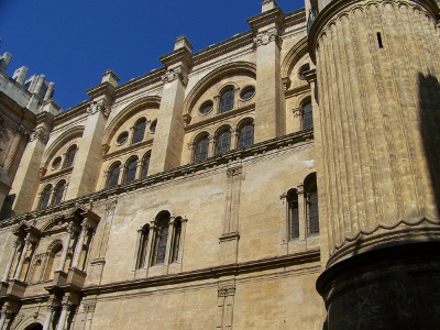Al conquistar los cristianos la ciudad, entraron en ella los Reyes el día siguiente y, consagrada la mezquita Mayor en iglesia por don Pedro Gonzalez de Mendoza, Cardenal de España, en compañía de fray Hernando de Talavera, obispo de Avila; don Pedro de Rexamo, obispo de Badajoz, y don García de Valdevieso, obispo de León, entraron en solemne procesión acompañados de toda su corte, asistiendo a una misa que ahí celebró su Capilla con toda solemnidad. A la Mezquita Mayor donde se ha hecho el nuevo y suntuoso edificio que se prosigue en fábrica (1622) dieron el nombre de Santa María de la Encarnación. Esto dice textualmente fray Martín de Roa, mencionando luego que el título de la Encarnación se lo daba la reina, siempre, a la iglesia Mayor. La tradición dice, además, que al entrar los Reyes el 19 de agosto de 1487, llevaron en solemne procesión la imagen de Nuestra Señora de los Reyes, imagen que les acompañaba en todas sus expediciones y que ostentaba todas las joyas de la reina Isabel, mientras Su Majestad iba detrás, descalza y humildemente vestida. La puerta principal seguía dando sobre la hoy calle de Molina Lario, y por ella se pasaba al Patio de los Naranjos. El piso de la primitiva iglesia estaba encima de la superficie de la calle, como aun hoy día; unas escaleras daban acceso al claustro y, a uno y otro lado de la puerta, y sobre él existían varias habitaciones, una de ellas llamada de la Sala Grande. En un acta de Cabildo se habló, inclusive, de usar estas habitaciones como sitio de reposo para ciertos enfermos recien salidos del hospital. |