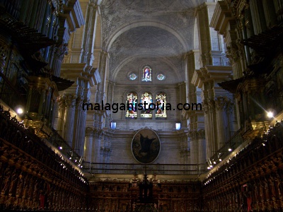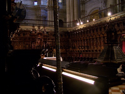 Fue el autor del San Pedro y San Pablo que se hallan sobre las sillas de los asistentes a cada lado de la silla prelacial que luce las armas del obispo Antonio Enríquez; igualmente de diferentes tableros del coro. Otras figuras se atribuyen a Alonso Cano, siendo el fastiol, construido en 1654, obra de Fernando Ortiz; entre éste y el trono hay un atril de bronce que representa un águila y fue realizada en 1681. Encima cuelga una hermosa araña de Bohemia de 1766. El coro es una de las piezas más valiosas de la Catedral, habiéndose hecho un estudio últimamente sobre cada uno de sus tableros y tallas. Lo único que verdaderameflte llama la atención es la hermosa figura de Nuestra Señora de las Angustias, obra de los hermanos Pissanis, de Florencia, instalada en 1800. A cada lado, obras de Salazar, de 1802, imitando mármol. Hay además cuatro altares laterales, cuyas figuras y tallas se atribuyen a Salvador León o León el Viejo.