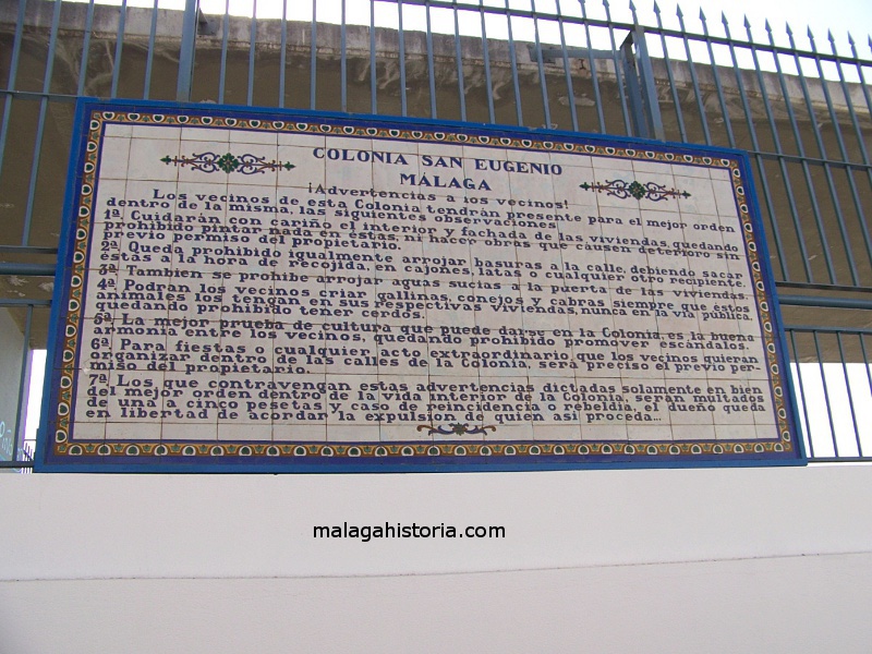 Por la Calzada de la Trinidad frente del arco a la Iglesia-Convento de la Trinidad encontramos un dedalillo de calles, entre ellas la primera que aparece de Monteleón. Caminando por ellas Don Tomas y su esposa recuerdan del pasado en el barrio y alguna anecdota de la posguerra. Tambien Don Eloy Angulo Carrillo, "que no Santiago", matiza, vecinos de toda la vida del barrio; que me reciben con amabilidad y cuentan que ahí, como consta en las distintas placas y en el arco, había una colonia llamada de San Eugenio... Don Eugenio García Serrano Huerta, hombre de dineros, que administraba el suministro en la época de agua a los barcos del puerto de Málaga, urbanizó por encargo al arquitecto y tambien alcalde de Málaga en los años 1928 al 1930, Don Fernando Guerrero Strachan el barrio, que fue colonia. |