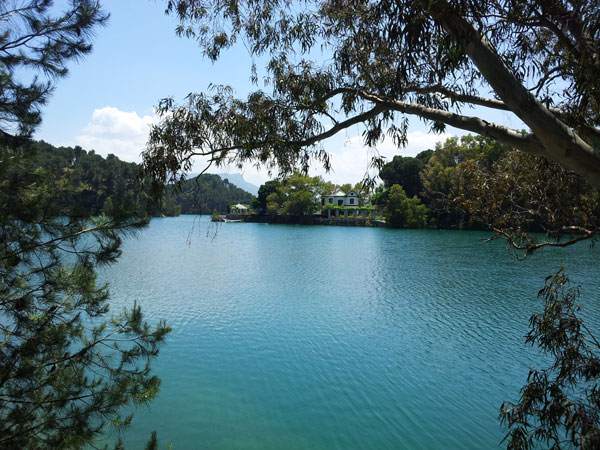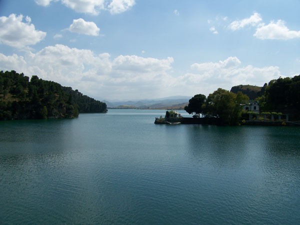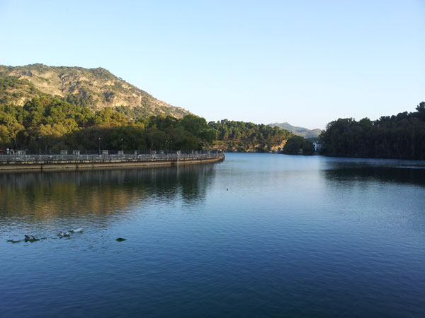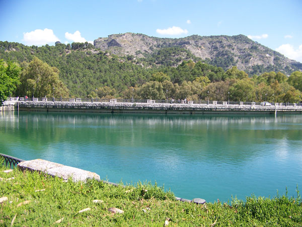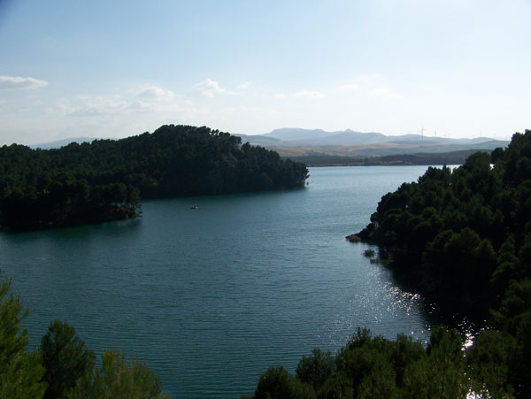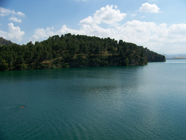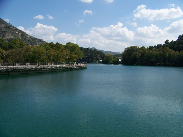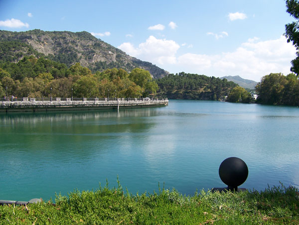 Presa Conde de Guadalhorce, abastecida con las aguas del río Turón, es un embalse perteneciente a la cuenca mediterránea andaluza, en el municipio de Ardales, la presa de gravedad, se inauguró en 1921, ocupa una superficie de 546 hectáreas, a lo largo de 12 kms del río Turón. Sus usos son de abastecimiento, riego, pesca deportiva, baño y meriendas al aire libre. Es uno de los principales aportes de agua potable a la ciudad de Málaga, nace en la sierra de las Nieves y recorre los términos de El Burgo y Ardales. |