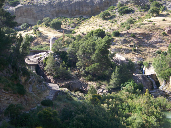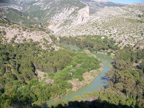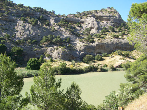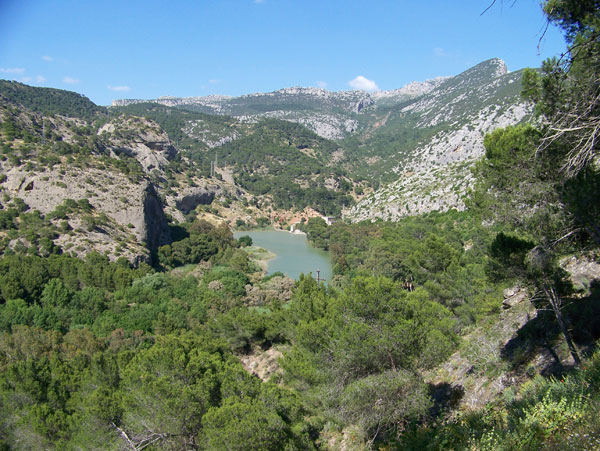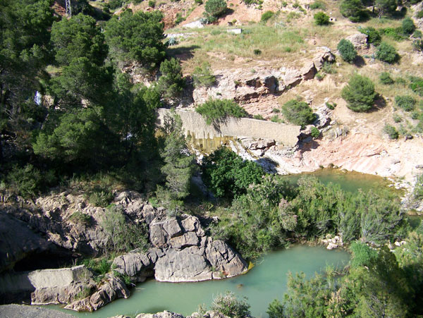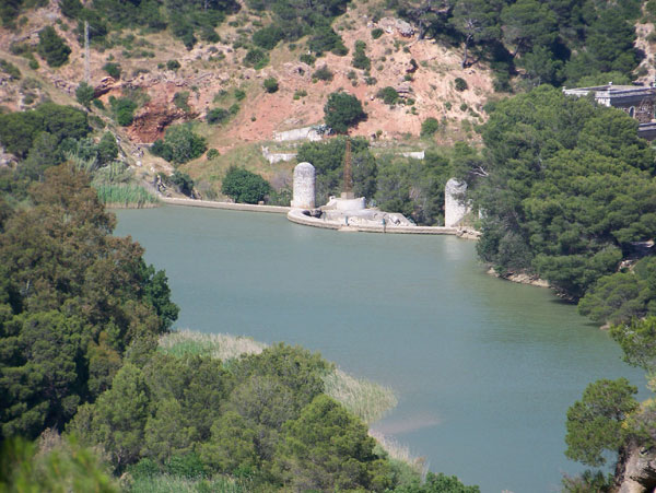 Embalse de Gaitanejo, perteneciente a la cuenca mediterránea andaluza, se encuentra situado en el municipio de Ardales, provincia de Málaga. Tiene una capacidad de 4 hectómetros cubicos. El río que lo alimenta es el Guadalhorce y tiene una superficie de 23 hectáreas. La presa es de tipo gravedad, construida en el año 1927. Discurre por una zona de cañones y altos riscos que nos conducen a la entrada del carril de servicio para el personal que ejecutó las obras en los años 20. Conocido posteriormente, como caminito del Rey, que recorrió D. Alfonso XIII en la inauguración de la obra hidraulica del Chorro en el año 1921. |