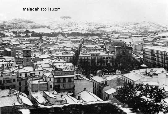 En el siglo XIX la la Plaza de la Merced adquiere su configuración actual. La Plaza de la Merced, tiene un origen anterior a la Edad Moderna. Guillén Robles en su obra Málaga musulmana afirma que extramuros de la ciudad se conservaba en la Edad Media un teatro, pues al hacer los cimientos de las Casas de Campos se hallaron restos de bóvedas, sobre las que se apoyaron los trozos de galería de forma circular. Los Musulmanes de Málaga llamaban a la Puerta de Granada, “bib al-malaab” o Puerta del Teatro, sin duda por los restos arqueológicos existentes. En éste espacio abierto, situado delante de la puerta que conducía a Granada y a la iglesia de la Victoria se estableció un mercado público, que fue declarado franco y feriado un día a la semana por Real Decreto de 28 de septiembre de 1489. Coincidiendo con éste nuevo uso la plaza comienza a estar definida por los edificios que desde entonces la van a circundar: en el costado norte el convento de la Paz, en el oeste con el convento de la Merced, en el este el hospital de Santa Ana y finalmente en el sur la muralla urbana de la ciudad, en la que se abría la Puerta de Granada. |