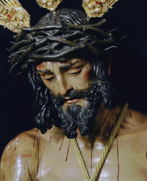 En 1694 se funda la Antigua Hermandad por la Real y Militar Orden de la Merced, en el convento de la Merced. Ya en 1980 esta Antigua Hermandad fue reorganizada en el Santuario de la Victoria por iniciativa de Juan Casielles. En 1982 se bendice la imagen de Nuestra Señora, siendo su autor Luis Álvarez Duarte. Un año más tarde se bendice la imagen cristífera, tallada por Buiza y policromada por Francsico Berlanga. Al año siguiente la cofradía salió en procesión por vez primera, haciéndolo por el barrio y llegando hasta el patio de los naranjos de la Catedral. En 1986 esta corporación ingresó en la Agrupación de Cofradías haciendo su estación de penitencia por el recorrido oficial el domingo de Ramos y entrando por primera vez en la Catedral. 10 años más tarde, en 1996, la Virgen de la Merced procesionó por las calles de Málaga por primera vez. Los Tronos. El trono del Cristo está diseño por Eloy Téllez Carrión , tallado y dorado por Manuel Guzmán Bejarano (1994-2001). Las túnicas. El Cristo como la Virgen los Nazarenos visten túnica de lienzo crudo con una larga cola que se recoge en el cíngulo de esparto; el capirote del mismo color, lleva el escudo mercedario. Dirección C/ Agua, nº 4. Málaga. Procesión de Domingo de Ramos. |