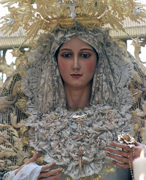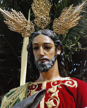 Los orígenes de esta corporación se remontan al siglo XVII, siendo los primeros datos documentales de 1772, apuntándola como filial de la Hermandad de la Puente del Cedrón. En 1911, con la reorganización de la cofradía en la iglesia del Sagrario, el antiguo Cristo del convento del Císter vuelve a procesionar. En 1921 Pollinica es una de las Cofradías que funda la Agrupación de Cofradías de Semana Santa de Málaga, legalizándose los estatutos de la corporación en 1922.1 En 1943, después deL periodo de la Segunda República y la Guerra Civil, en los cuales se perdió la imagen titular, se bendice la actual imagen del Señor, obra de Martínez Cerrillo, sustituyendo a la imagen de Martín Simón que se procesionaba desde la década de los años 1930, y se produce el traslado a la Iglesia de San Felipe Neri. En 1947 se bendice la imagen de María Santísima del Amparo, de Castillo Ariza. En 1981 se traslada a su actual sede, la Iglesia de San Agustín, y después de muchas tensiones realiza la primera salida matinal. Del 2001 al 2005 los tronos estuvieron saliendo desde la Catedral. En 2006 realiza su primera salida desde la Casa Hermandad de calle Parras. Los Tronos. El trono del Cristo es de madera tallada y dorada realizado por Castillo Ariza y Francisco Díez (1945). El trono de la Virgen es de alpaca plateada, realizando Díaz Roncero el cajillo (1968) y las jarras (1963), Santos Campanario el moldurón inferior (1978) y las barras de palio (1985), los los arbotantes diseño de Jesús Castellano realizado losdelanteros en los talleres Villarreal (1990) y Cristóbal Martos los traseros, el palio está en fase de ejecución, bordado en oro sobre malla por Juan Rosén (2000-2002) y el manto es de terciopelo verde bordado en plata por las RR. MM. Filipenses del Convento de San Carlos (1957), restaurado y ampliado por Juan Rosén (2004). Las túnicas. En la sección del Cristo, de lanilla color crema con las puñetas, botonadura, sardinetas, capas y capirotes morados de damasco. Una parte de la sección van vestidos a la usanza hebrea con rayas. En la sección de la Virgen de lanilla color crema con las puñetas, botonadura, sardinetas, capas y capirotes verdes de damasco. Las capas de damasco son color palma con cíngulo verde. Dirección C/ Parras, nº 20. Málaga. Procesión de Domingo de Ramos. |