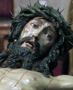 Sus orígenes se remontan al año 1985, cuando un grupo de alumnos salesianos crean la cofradía, rescatando así la advocación del Santo Cristo de las Penas. La primera salida se produjo el Miércoles Santo de 1991, realizando estación de penitencia en la Santa Iglesia Catedral, pese a no ser aún hermandad agrupada. Ya en 1995 ingresó en la Agrupación de Cofradías y realizó la primera procesión como ente agrupado el Miércoles Santo de 1996, siendo, desde la fecha, la primera Hermandad de la jornada en pasar por Recorrido Oficial. Uno de los últimos acontecimientos recientes vividos en el seno de la cofradía se produjo el 31 de Octubre de 2009, cuando cambiaron de sede canónica, trasladándose desde la Parroquia de la Divina Pastora (sede de la Hermandad desde 1988) al Santuario de María Auxiliadora, donde los sagrados titulares reciben culto actualmente. Los Tronos. El trono procesional fue realizado por los Hermanos Caballero González entre los años 1997 y 2000. Está tallado en madera de cedro y barnizado. Es de estilo barroco e iluminan al grupo escultórico cuatro arbotantes situados en las esquinas, debajo de los cuales, van cuatro ángeles mancebos, sosteniendo diversos elementos de la Pasión de Cristo. El cajillo se completa con ocho cartelas realizadas por Manuel Carmona, en las que se pueden ver distintas escenas de la vida de María tales como la Visitación de Santa Isabel, o la Coronación de la Virgen. Dicho trono se estrenó oficialmente en el Vía Crucis Jubilar celebrado en Málaga en el año 2000. Todos los bordados de los ropajes del misterio están realizados por Juan Rosén. Las Túnicas. Negras con cola recogida en cinturón ancho de esparto, capirote del mismo color y sobre él, el escudo de la Hermandad. Dirección C/ Eduardo Domínguez Ávila, 19. Málaga. Procesión de Miercoles Santo. |